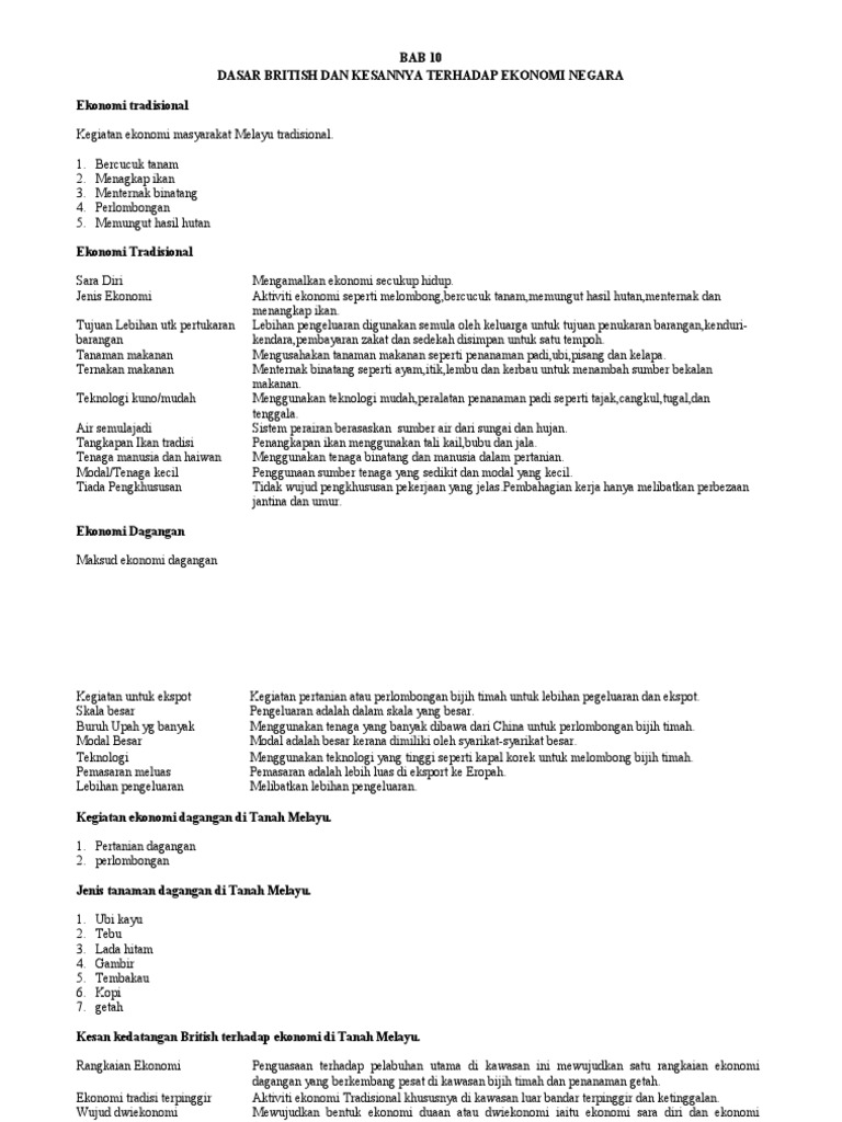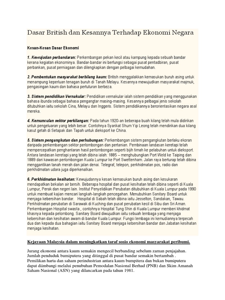 83 332 83 found this document useful 332 votes 62K views 9 pages. Orang Melayu diperkenalkan dengan tanaman baru yang mendapat pasaran yang amat baik pada peringkat antarabangsa. Dasar british dan kesannya terhadap ekonomi negara kbat.